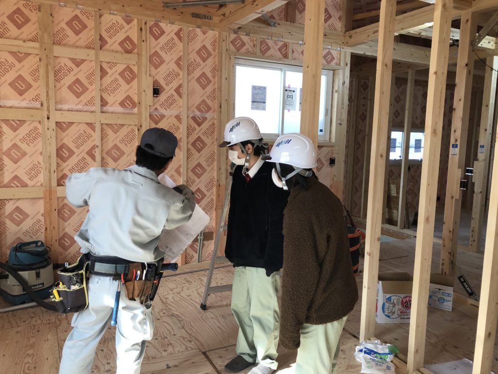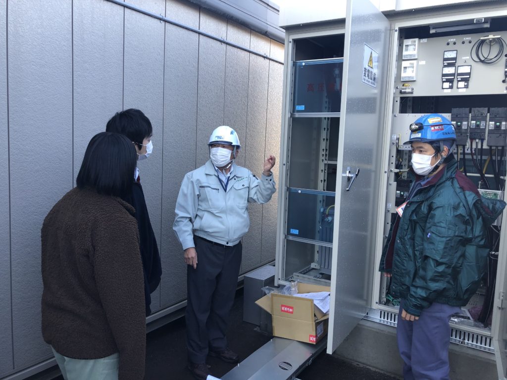 建設中の住宅や企業など、様々な場所を見学しました。定電圧から高電圧に切り替えた企業の受電のタイミングという貴重な現場にも立ち合うことができました。新築住宅工事では最新の照明に驚いていました。ただ工事をするだけではなく、現場では四隅に塩とお酒をまいてお清めをしていたことなど、印象に残っているようでした。
