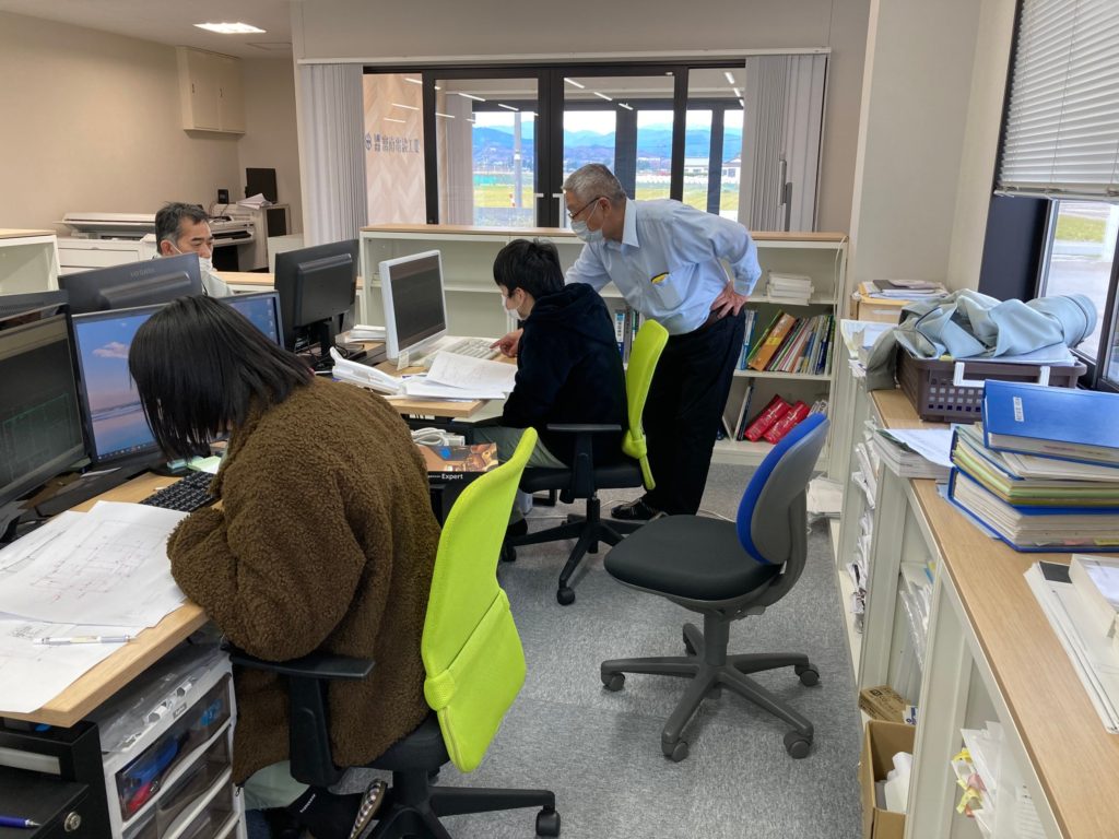 現場の見学、図面の作成、配線作業、いろいろと経験してもらいましたが、社会人として大切なこと、基本的なことはどの仕事も同じですから。