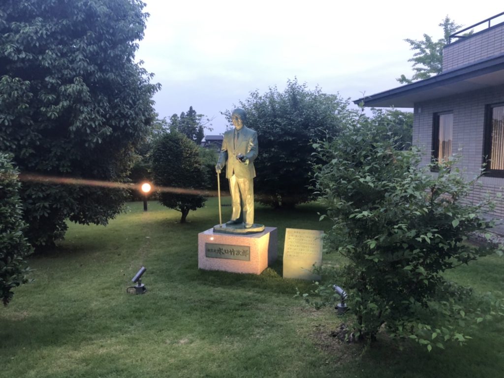 2022年6月14日(火曜日)、弊社が平素よりお世話になっております立山科学グループの創業者『水口竹次郎』様の銅像設置に伴い、弊社よりライトアップの設備を寄贈させていただきました。