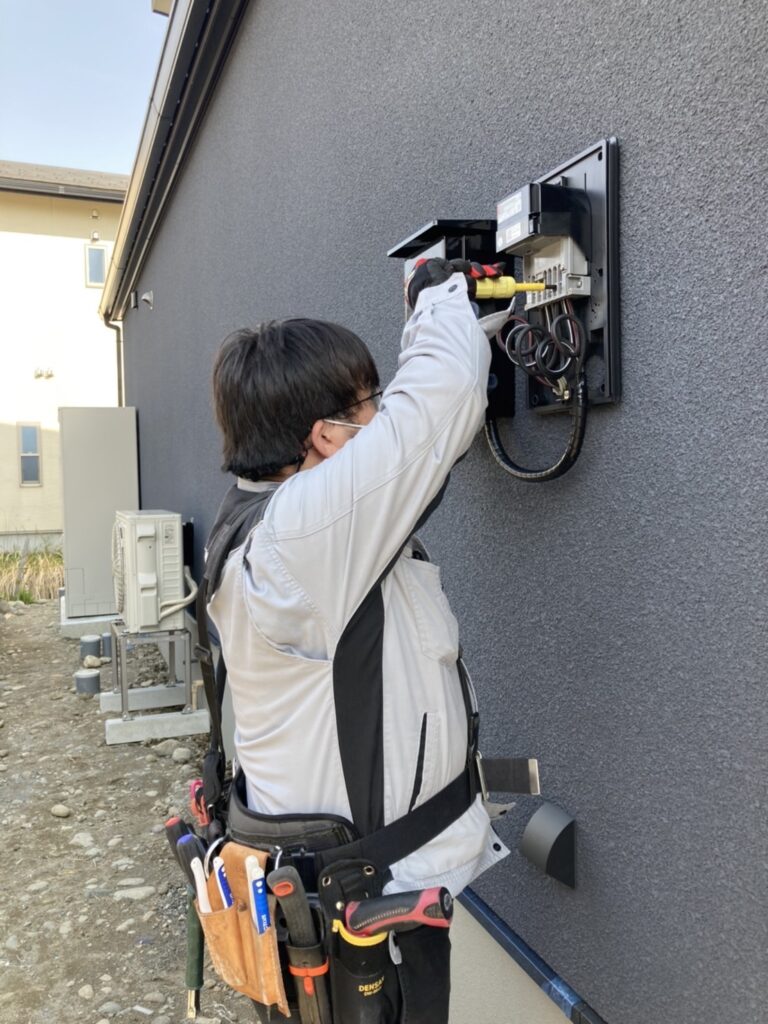 新築住宅、改装工事の電気の配線、結線、ボックス、コンセントなどの作業を覚えました。