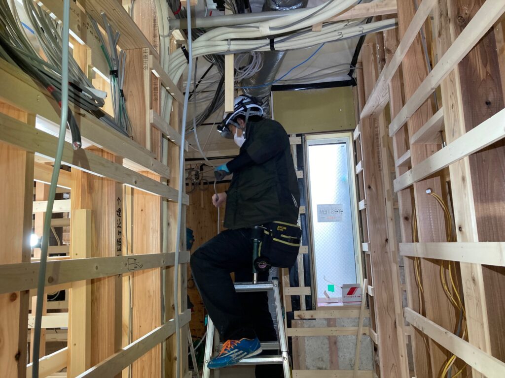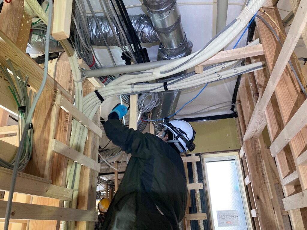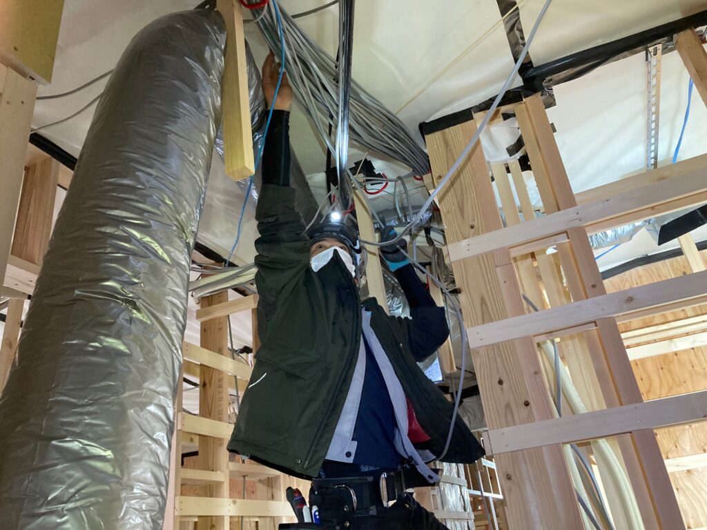 最初は住宅メインで住宅の仕事に携わり、新築住宅での配線工事を行いました。