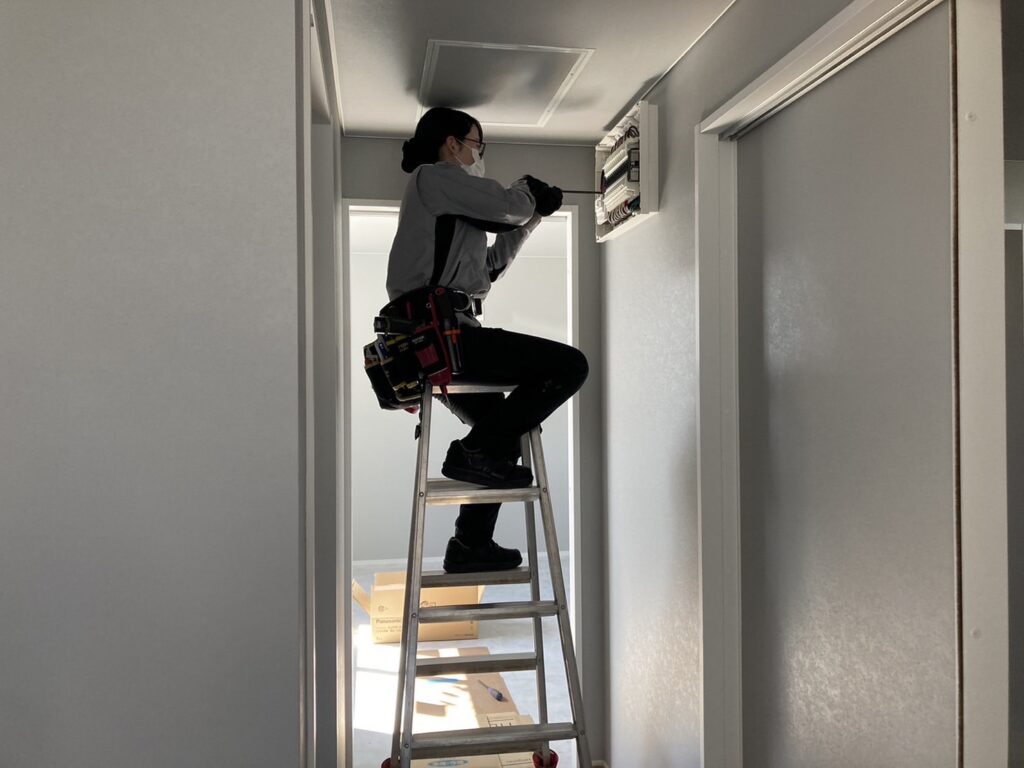 間もなく入社してから1年になります。色々な仕事や現場に関わってきた中で、器具付けなど細かい仕事が多かったですが、細かい作業は好きなので性に合っていたようです。