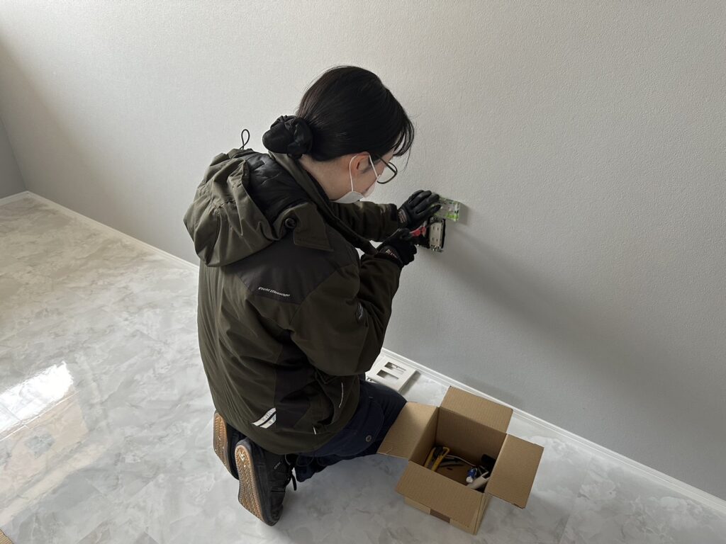 間もなく入社してから1年になります。色々な仕事や現場に関わってきた中で、器具付けなど細かい仕事が多かったですが、細かい作業は好きなので性に合っていたようです。